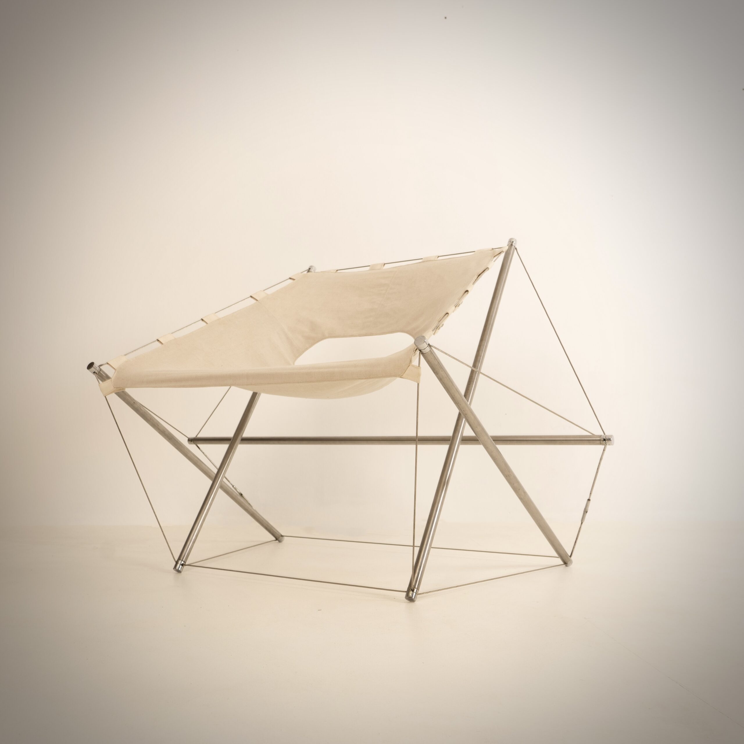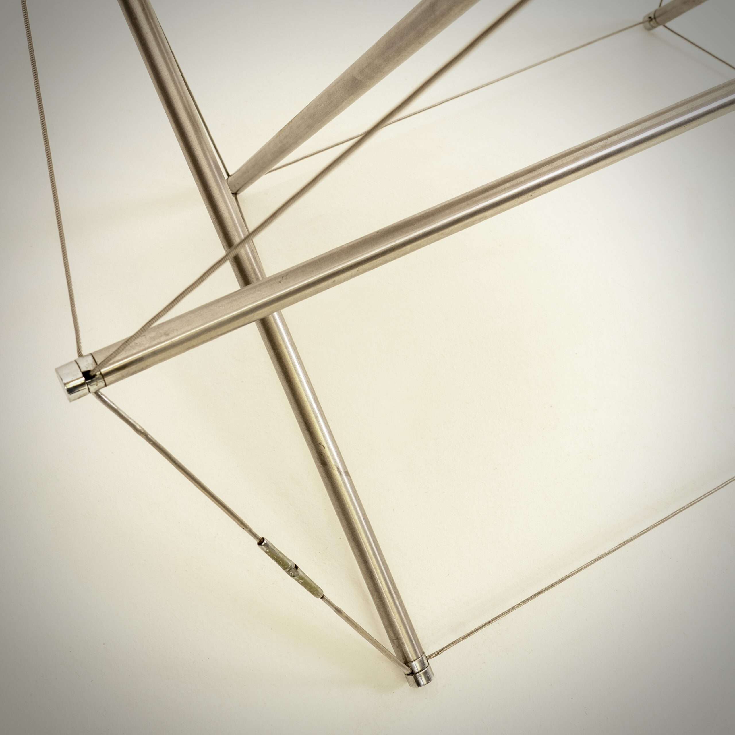 À rapprocher des structures de Kenneth D. Snelson (1927-2016) de 1967 et de l’œuvre de Buckminster Fuller (1895-1983)